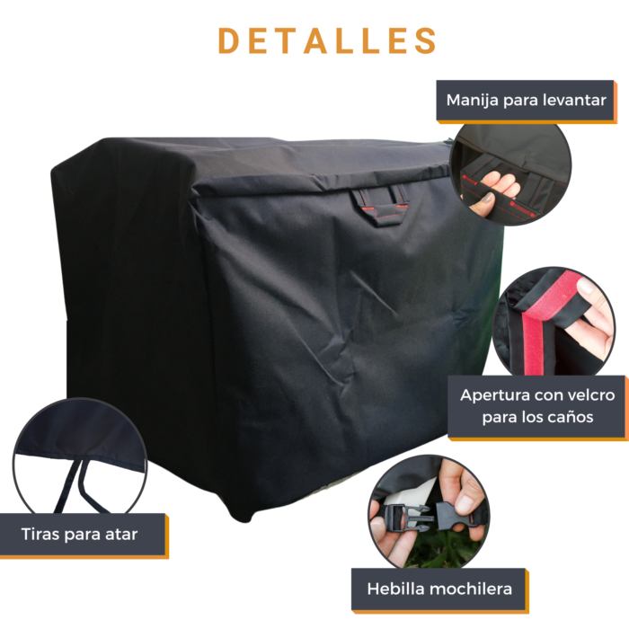 EXCELENTE FIJACIONES Y AJUSTE: incluye características únicas como hebilla / gancho OneClick (HEBILLA MOCHILERA) no tenés que preocuparte más de que tu funda se vuele con el viento. Adicionalmente nuestro diseño exclusivo incorpora TIRAS DE SUJECIÓN en la base para un ajuste perfecto de tu funda CoverAll® a las condiciones climáticas más extremas.