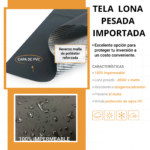 LONA IMPORTADA PESADA (380 gramos x m²) con PVC: Sabemos lo mucho que querés proteger tus bienes y por eso CoverAll® está hecha con TELA IMPORTADA DOBLE CAPA, que cuenta con una malla de poliéster plano 300 DTEX, recubierto con una capa de pvc de un espesor de 300 micrones.