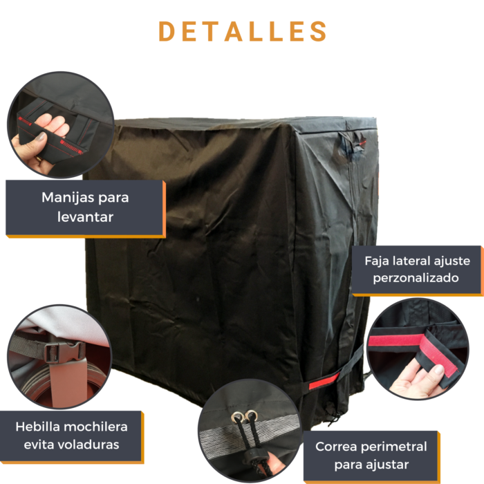 EXCELENTE FIJACIONES Y AJUSTE: incluye características únicas como un CORDON CON TANCA de ajuste en la base para una fijación adecuada a la parrilla y además gracias al gancho OneClick (HEBILLA MOCHILERA) no tenés que preocuparte más de que tu funda se vuele con el viento. Adicionalmente nuestro diseño exclusivo incorpora TIRAS DE SUJECIÓN en la base para un ajuste perfecto de tu funda CoverAll® a las condiciones climáticas más extremas.