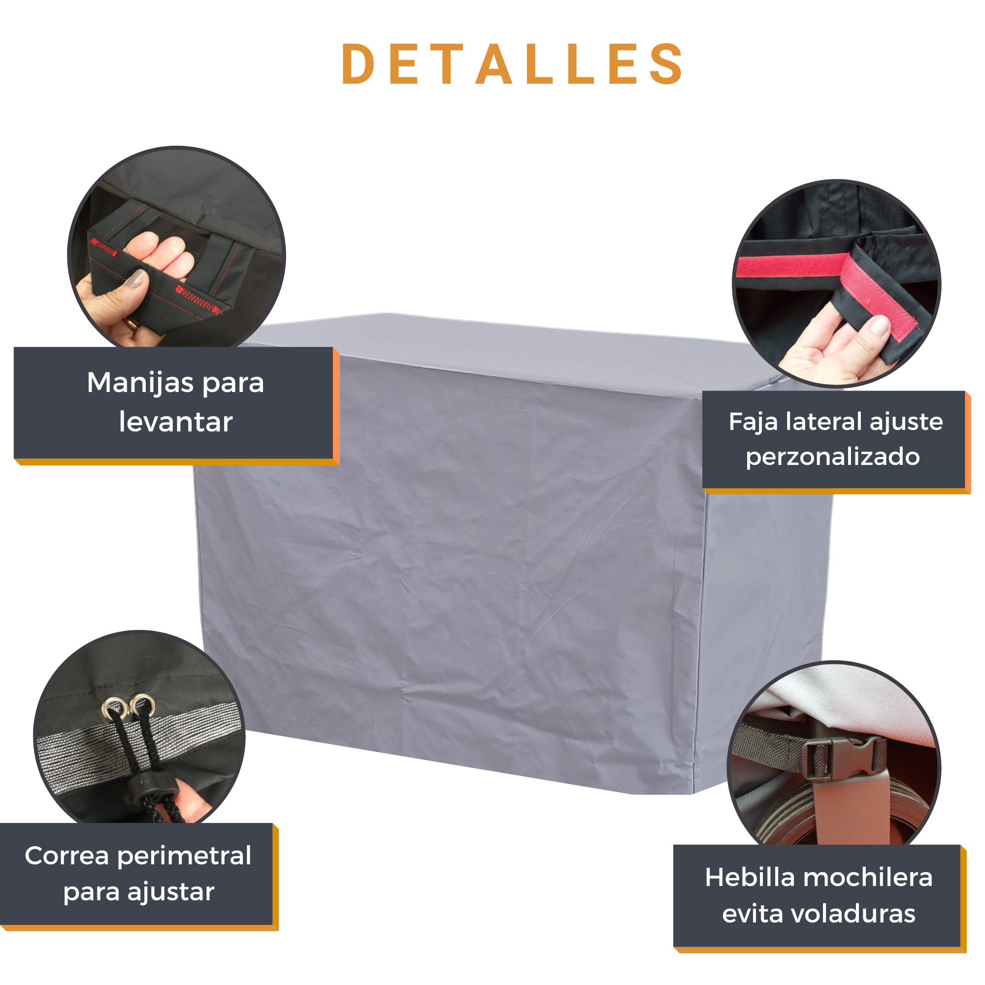 IMPERMEABLE 100% & PROTECCIÓN UV: Entendemos tu preocupación por la lluvia y el sol que dañan tu parrilla, por eso nuestras fundas CoverAll® son 100% IMPERMEABLES al agua, protegen contra la lluvia, la nieve, el sol, la suciedad y no se agrietan ante las bajas temperaturas o mucho calor.