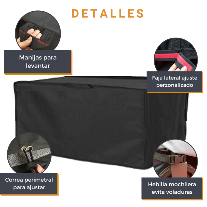 FACIL INSTALACIÓN Y EXTRACCIÓN: la practicidad para el uso de la funda CoverALL® está garantizada con su FAJA DE AJUSTE LATERAL (aplica según modelo) y la MANIJA DE AGARRE en la parte superior, lo que permiten un muy facil montaje y remoción.
