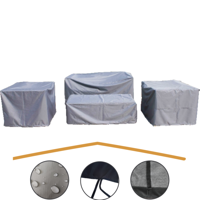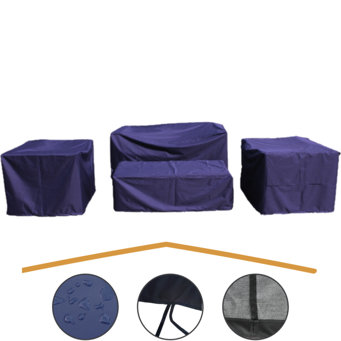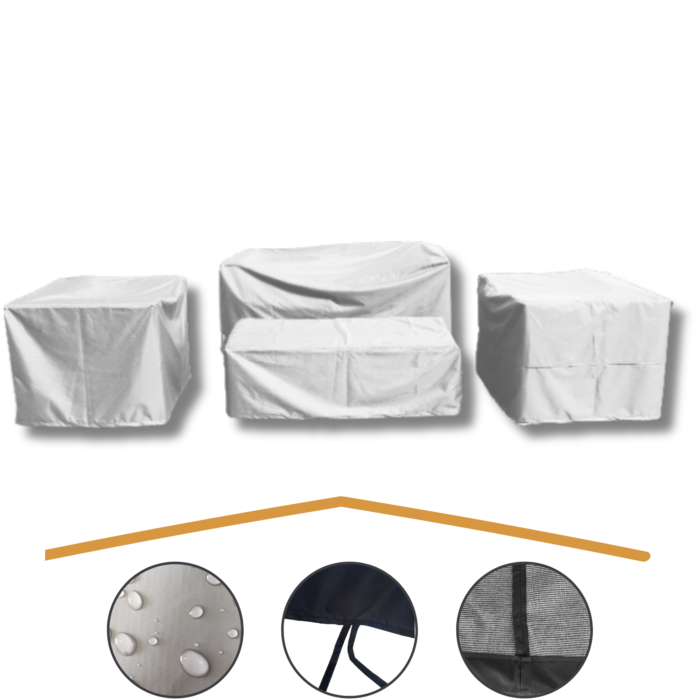 Funda Cubre Juego de Sillones Mike Oblong de exterior con mesa, sillon de 3 cuerpos y 2 sillones individuales – Tela Importada 100% Impermeable!